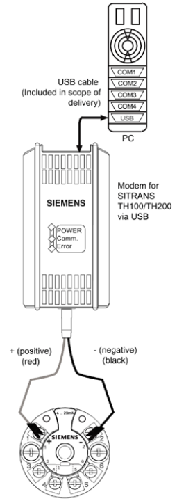 通過USB插口的調(diào)制解調(diào)器對SITRANS TH100進(jìn)行參數(shù)化設(shè)定